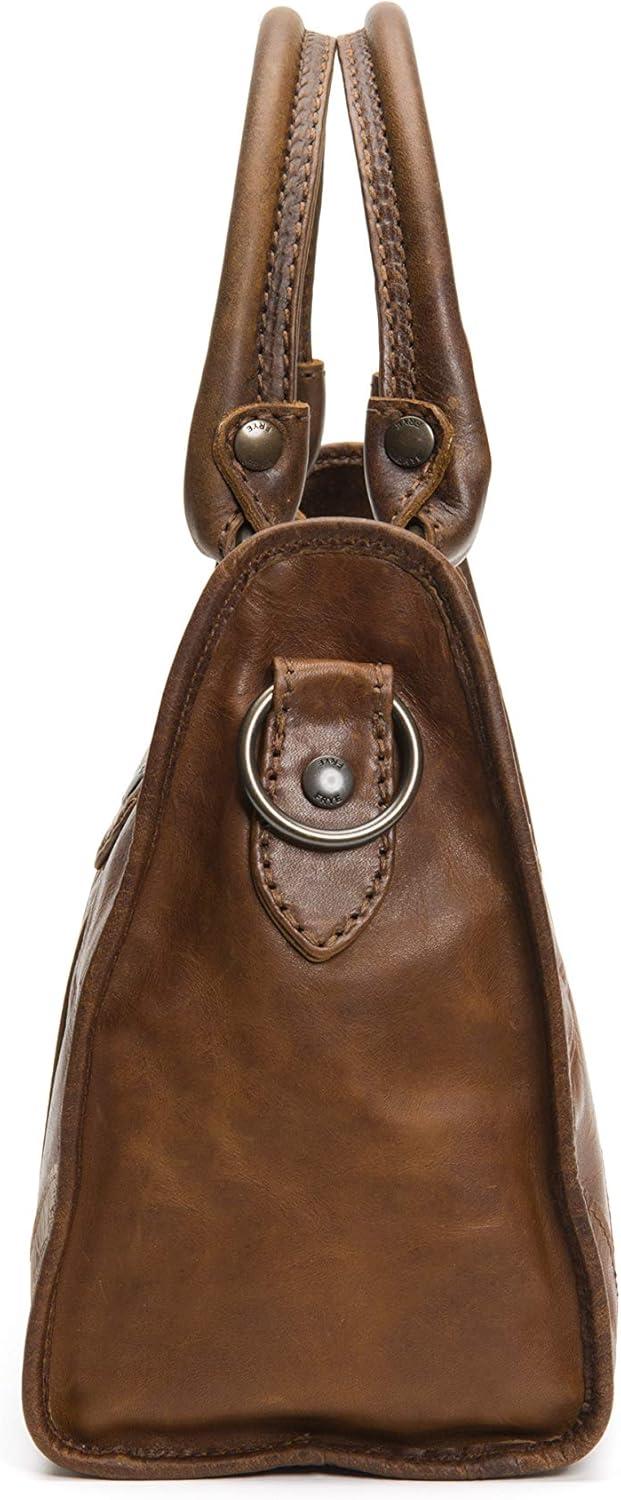 imageFrye Womens Melissa Zip Satchel Leather Handbag with Adjustable Shoulder Strap ampamp Top HandleDark Brown
